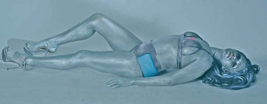 As NASA chooses her for the making of the film Porning the Planet, Sensora attempts to answer multiple personality disorder through the building of a porn persona. On her way to meet Hugh Hiefner, our savior Sensora’s journey follows her from glam porn star to snuff assassinated President; to finally as a refugee in outer space, launching into the galaxy. Sensora’s metamorphosis challenges our notion of how pornography has altered our method of communicating and connecting with each other and ourselves. All multi-media in the show reflect images we download from her mind. Her provocative memories, her violent fantasies and her daily rituals are witnessed and downloaded for mass absorption into the collective consciousness.