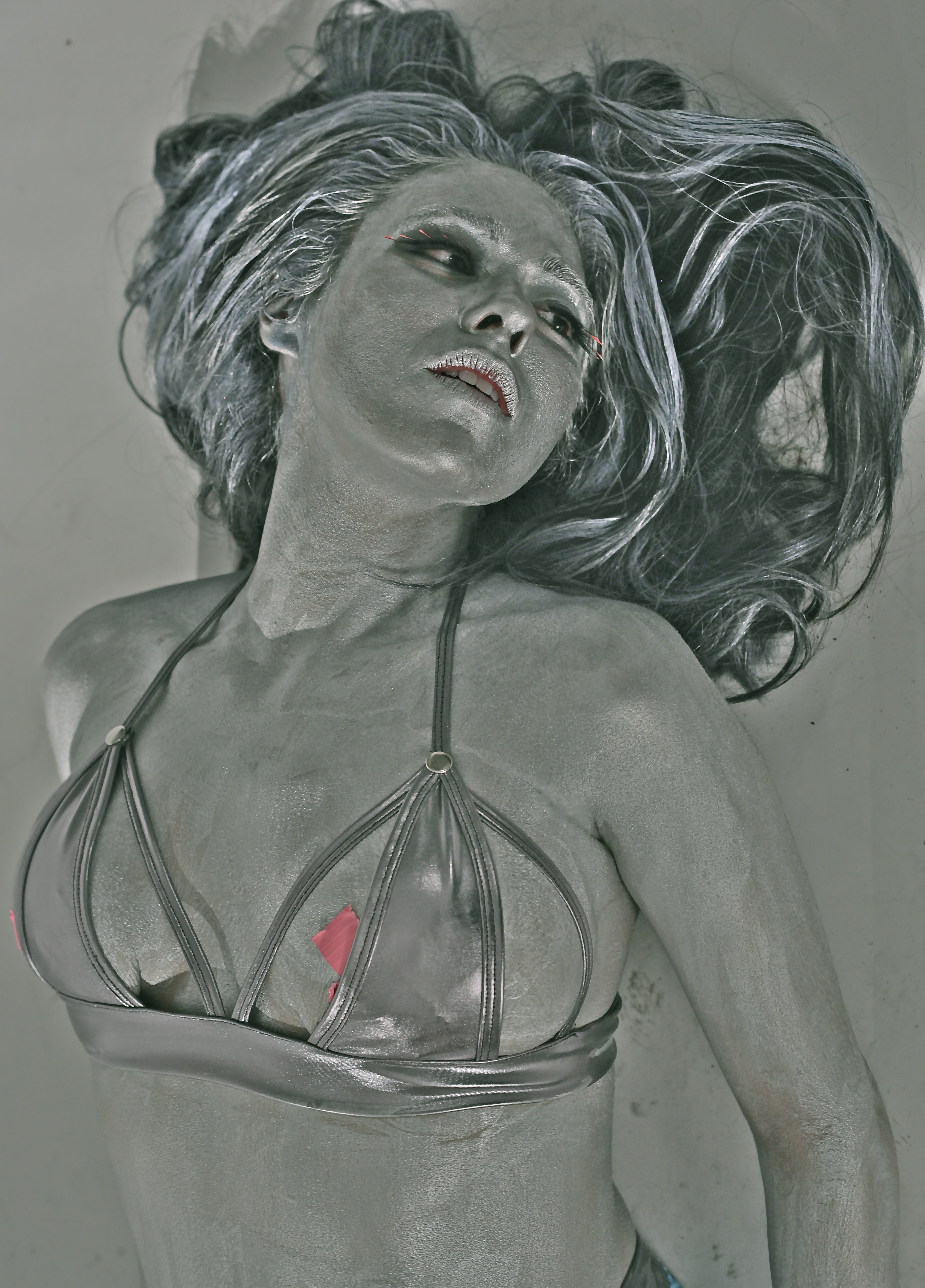 As NASA chooses her for the making of the film Porning the Planet, Sensora attempts to answer multiple personality disorder through the building of a porn persona. On her way to meet Hugh Hiefner, our savior Sensora’s journey follows her from glam porn star to snuff assassinated President; to finally as a refugee in outer space, launching into the galaxy. Sensora’s metamorphosis challenges our notion of how pornography has altered our method of communicating and connecting with each other and ourselves. All multi-media in the show reflect images we download from her mind. Her provocative memories, her violent fantasies and her daily rituals are witnessed and downloaded for mass absorption into the collective consciousness.